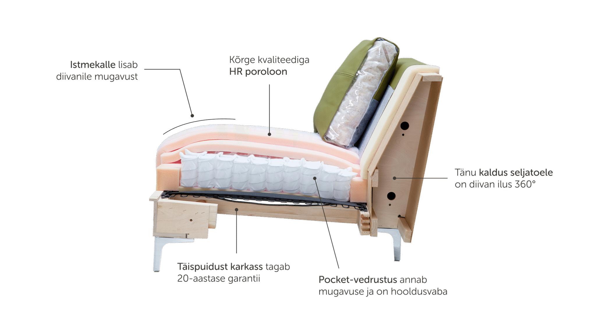 Anname diivanite ja voodite täispuidust karkassile 20 aastase garantii
