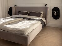 Voodi Viola kumerate äärtega peats lisab magamistoale stiili ja toob ka neutraalse kangaga voodi kaunilt esile. Puidust jalaraam on tagasihoidlik, ent selle peened detailid moodustavad koos peatsiga täiuse. Viola on teravate nurkadeta ja pehme polsterdatud raamiga. Hea on olla, kui kodus on selline uhke voodi.