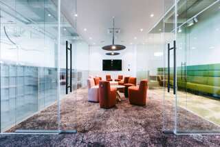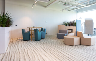 Small meetings are held in built-in rooms that have compact Meeter sofas, for bigger meetings there is a separate room with low Hubert rotating poufs. Lounge areas are furnished with Meeter or Sans sofas where there is comfortable to take a moment to read the newspapers, have a coffee with a colleague or by the window in a rotating August armchair if you want to take a break in peace and quiet with a stunning sea view.
