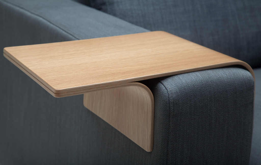 A sofa armrest always tends to become a table from time to time if its shape so permits. Why not consciously emphasise this opportunity? Our Simon tray can be conveniently placed on the sofa armrest and used either side up. It serves to support your pleasant moments of leisure.
