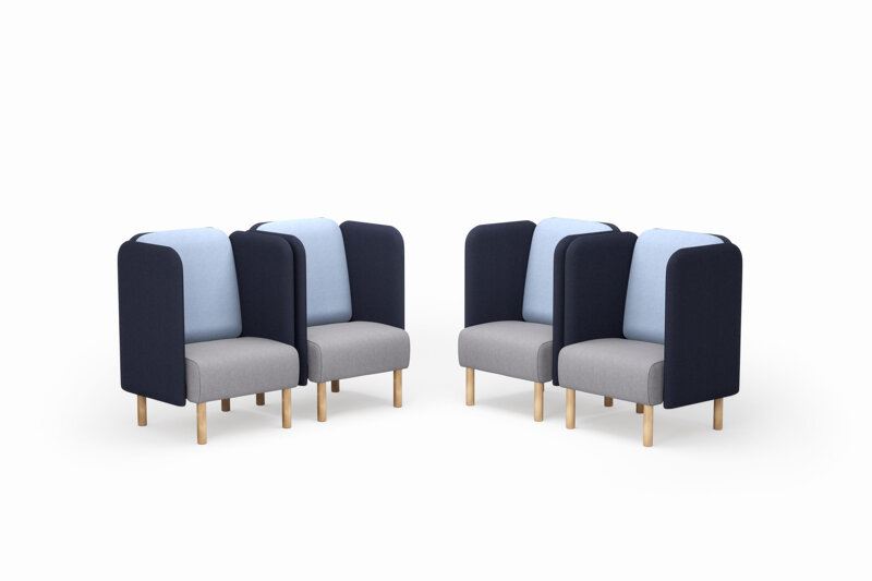 August sofas come in different variations. You can have an armchair or a sofa; you can choose among three different heights of the backrest; you can add a roof to create more separated seating; you can combine them with a wall to create a Workbay; not to mention the endless possibilities of fabric and colour options.