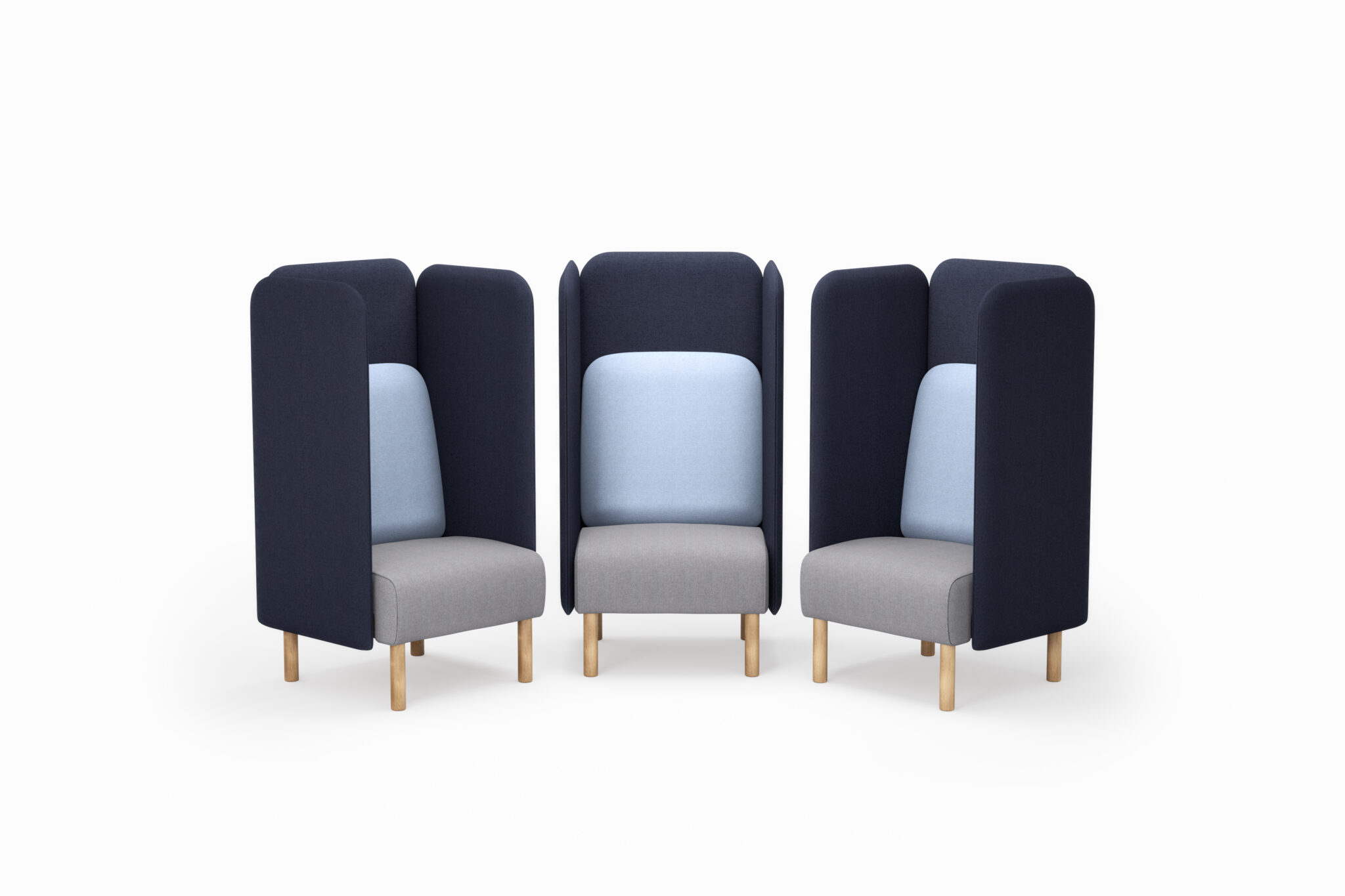 August sofas come in different variations. You can have an armchair or a sofa; you can choose among three different heights of the backrest; you can add a roof to create more separated seating; you can combine them with a wall to create a Workbay; not to mention the endless possibilities of fabric and colour options.
