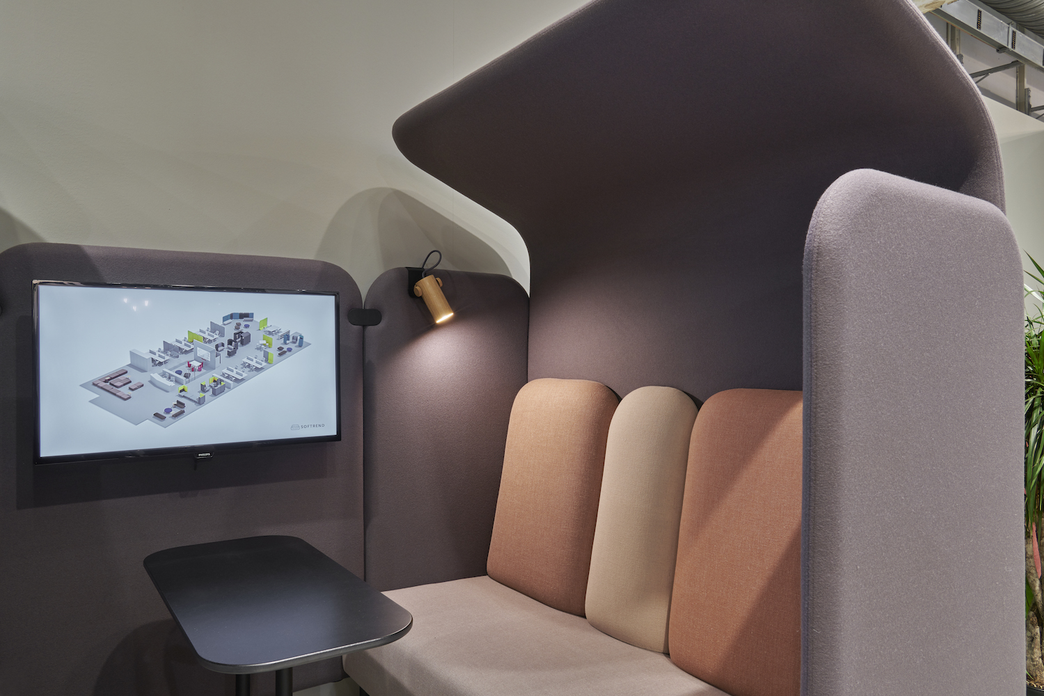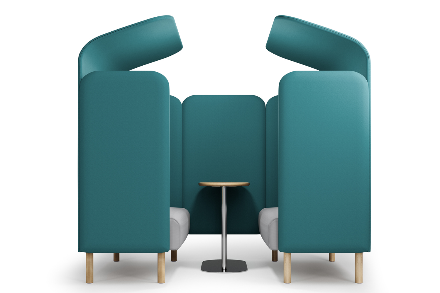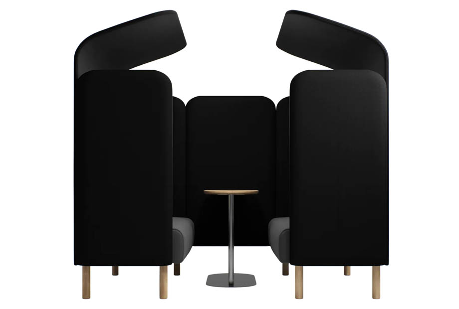 The August sofa set provides an easy solution for creating a workbay where you can go to get some privacy or have meetings. The only thing it takes is to connect two roofed Augusts with a partition wall.