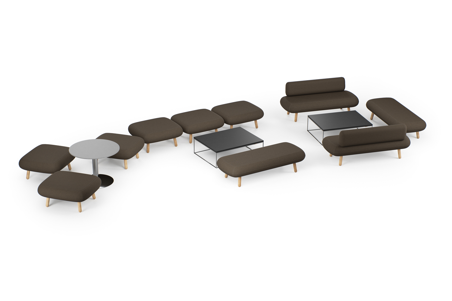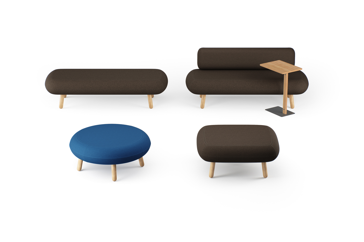 The Sofi series was designed to make people in offices feel more at home. In terms of style it’s more fun than your average office furniture, and more slimline and approachable, too. The use of legs (rather than a base) produces a lightness that’s both literal and figurative, and invites people to rearrange the poufs around the room to suit themselves.