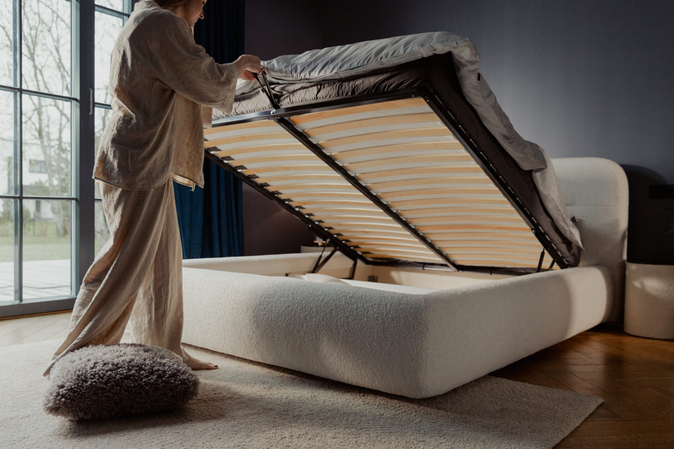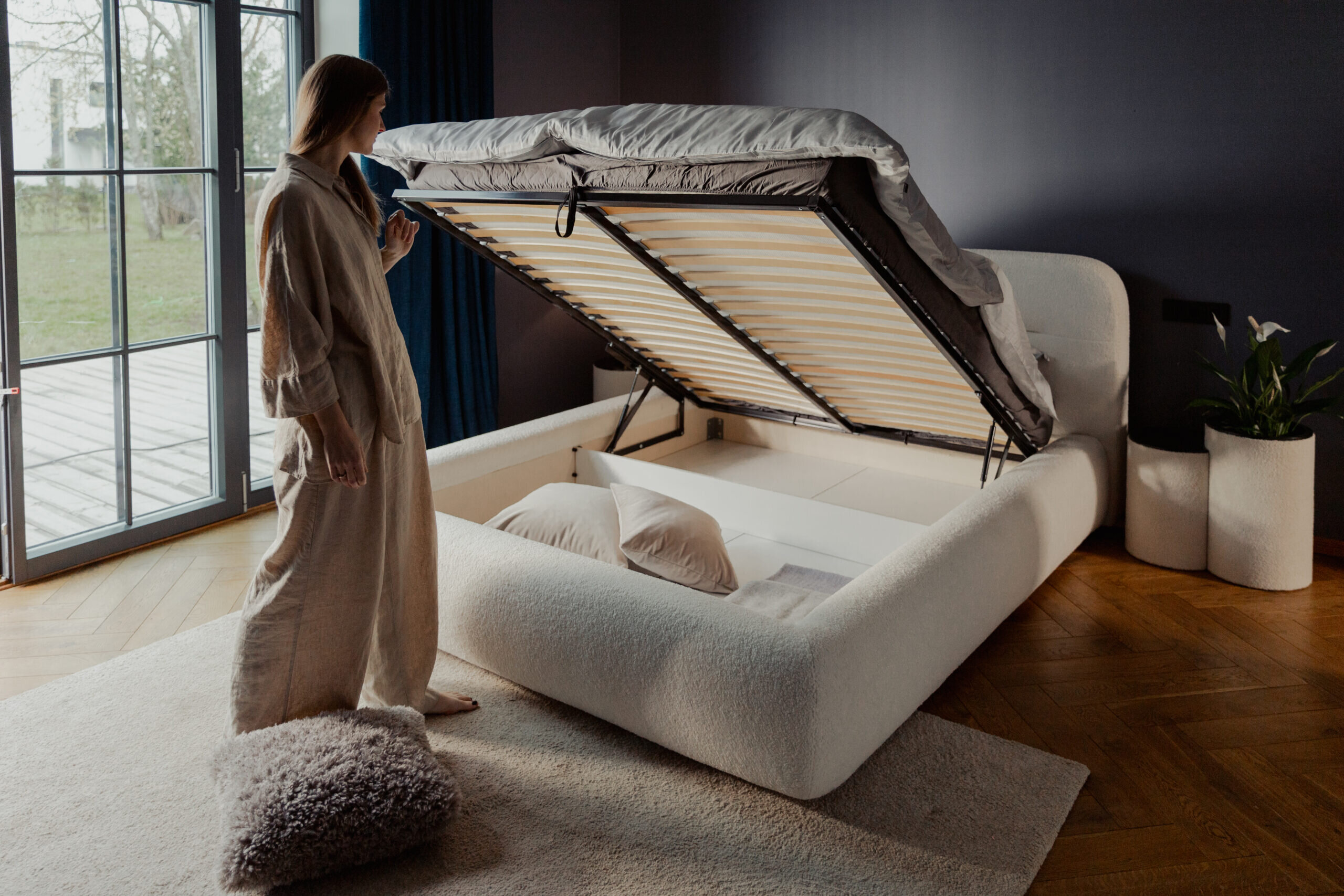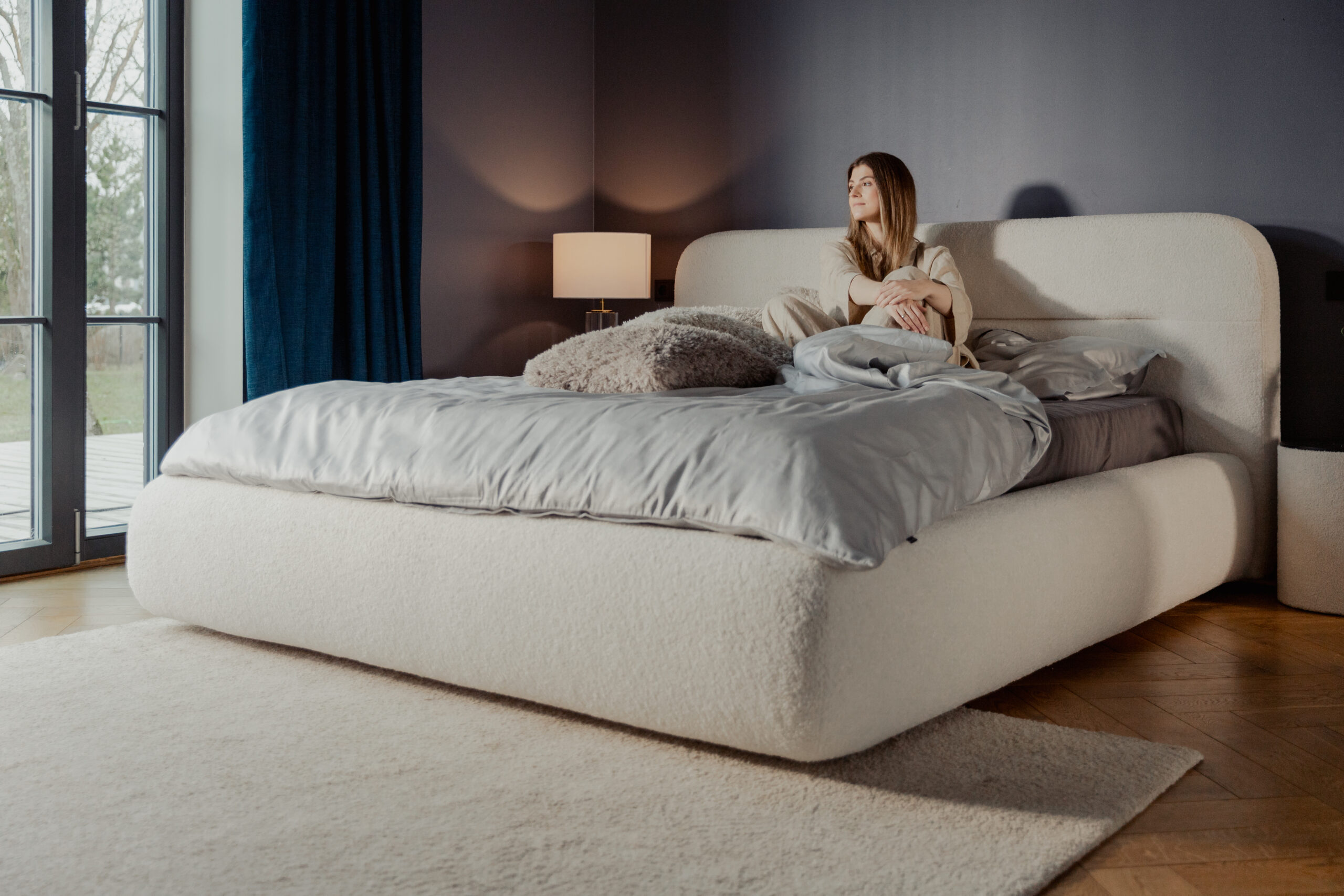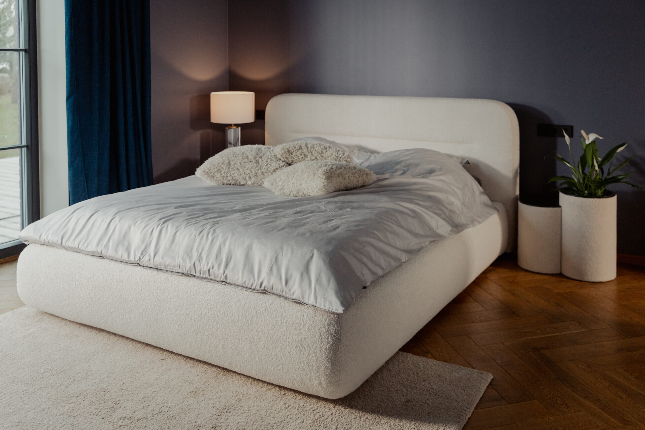 It feels good to be in a bedroom where a stylish bed not only decorates the space but also gently guides sleepers into dreamland. Thanks to its generously large dimensions, Huba becomes the bedroom’s centerpiece. Its rounded shapes on every side create a cozy atmosphere and a welcoming feeling.