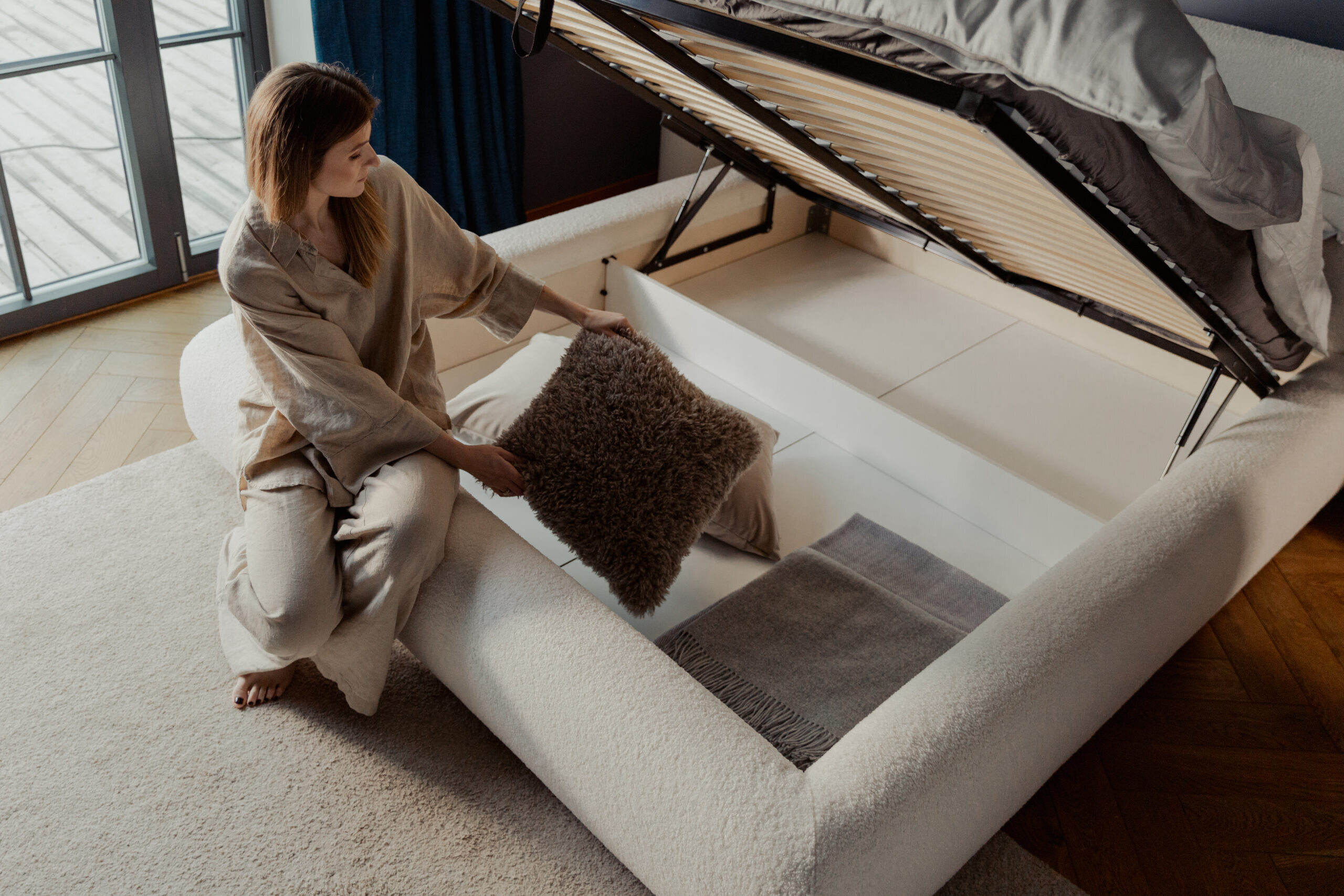 Linen storage: you can choose a version with a storage box or one without a storage box