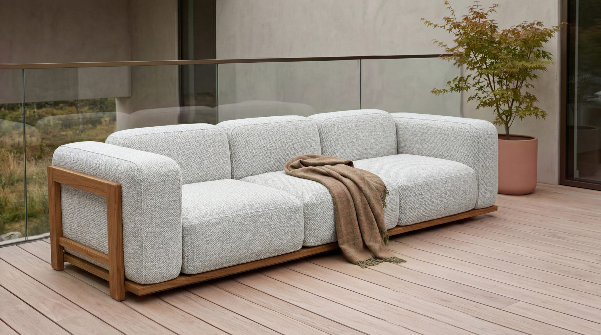 Naturaalne tiikpuit ja stiilne disain loovad ajatu terviku, mis annab õuealale tõeliselt luksusliku ja kutsuva olemise – ilma et peaksid mugavuses järeleandmisi tegema. Padjakatted on vetthülgavast kangast ning vastupidavad erinevates ilmastikutingimustes, sobides hästi Eesti muutliku kliimasse.