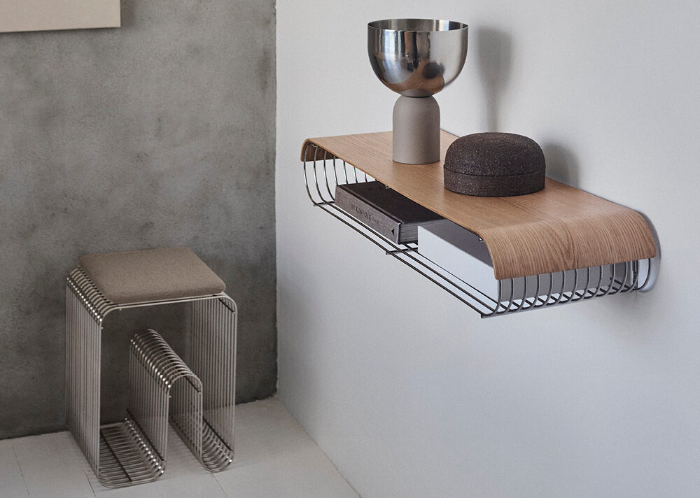 Curva seinariiul köidab tähelepanu oma kuju ja stiilse viimistlusega. Painutatud vormiga ja kaetud rauast valmistatud riiul on vastupidav ja praktiline ning ka ilmekalt dekoratiivne mööbliese.