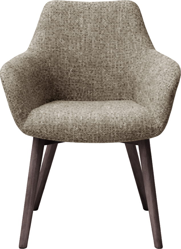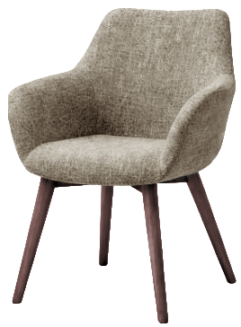 Söögitooli täispuidust konstruktsioon tagab stabiilsuse, soe ja tekstuurne kangas lisab ruumi hubasust ning pähklitoonis jalad toovad disaini elegantsi.